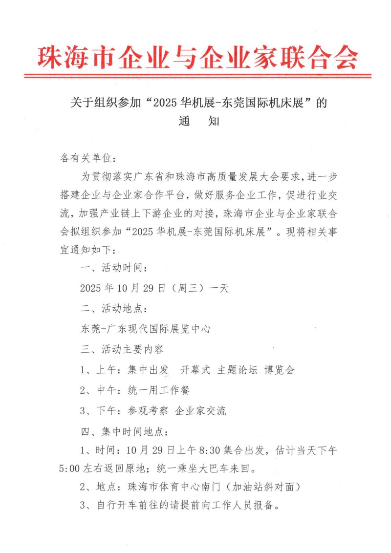 关于组织参加“2025华机展-东莞国际机床展”的通知